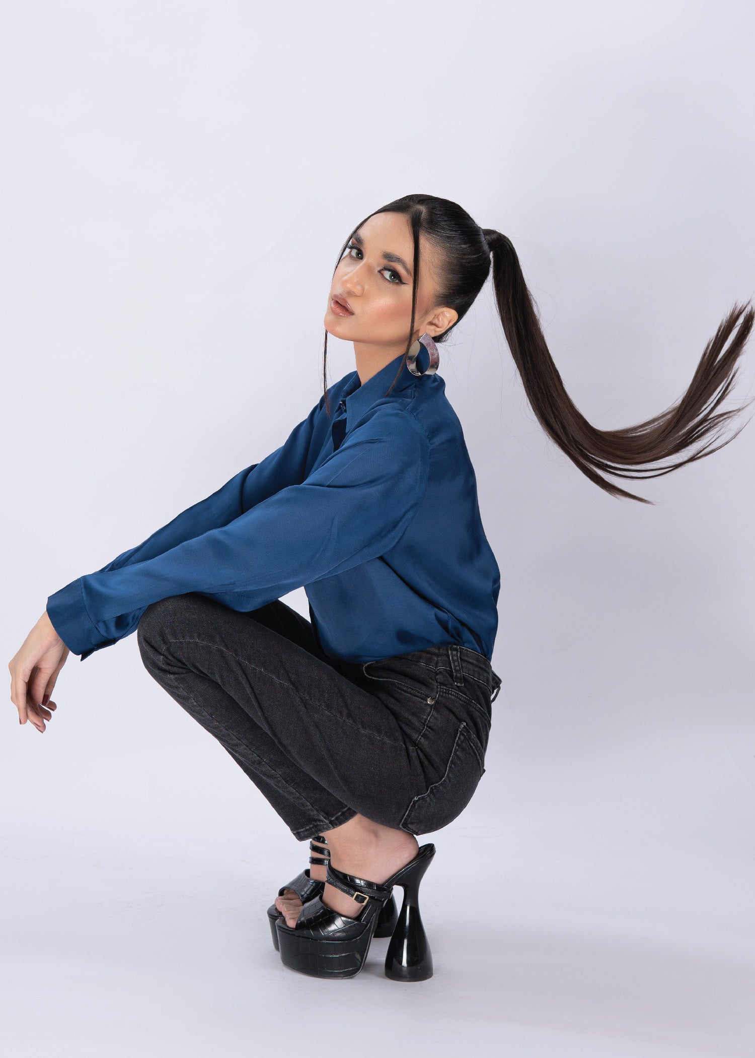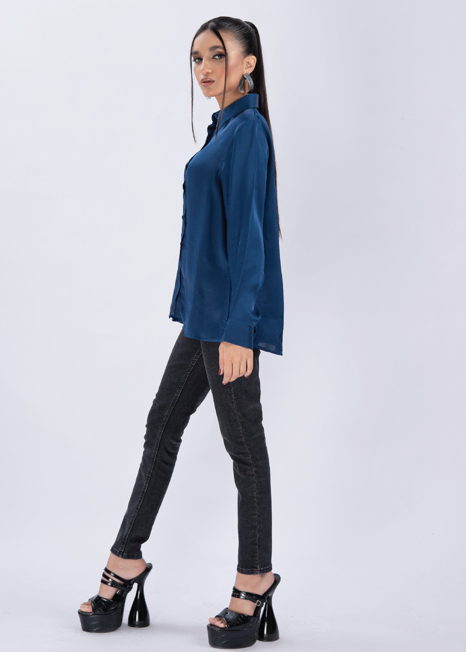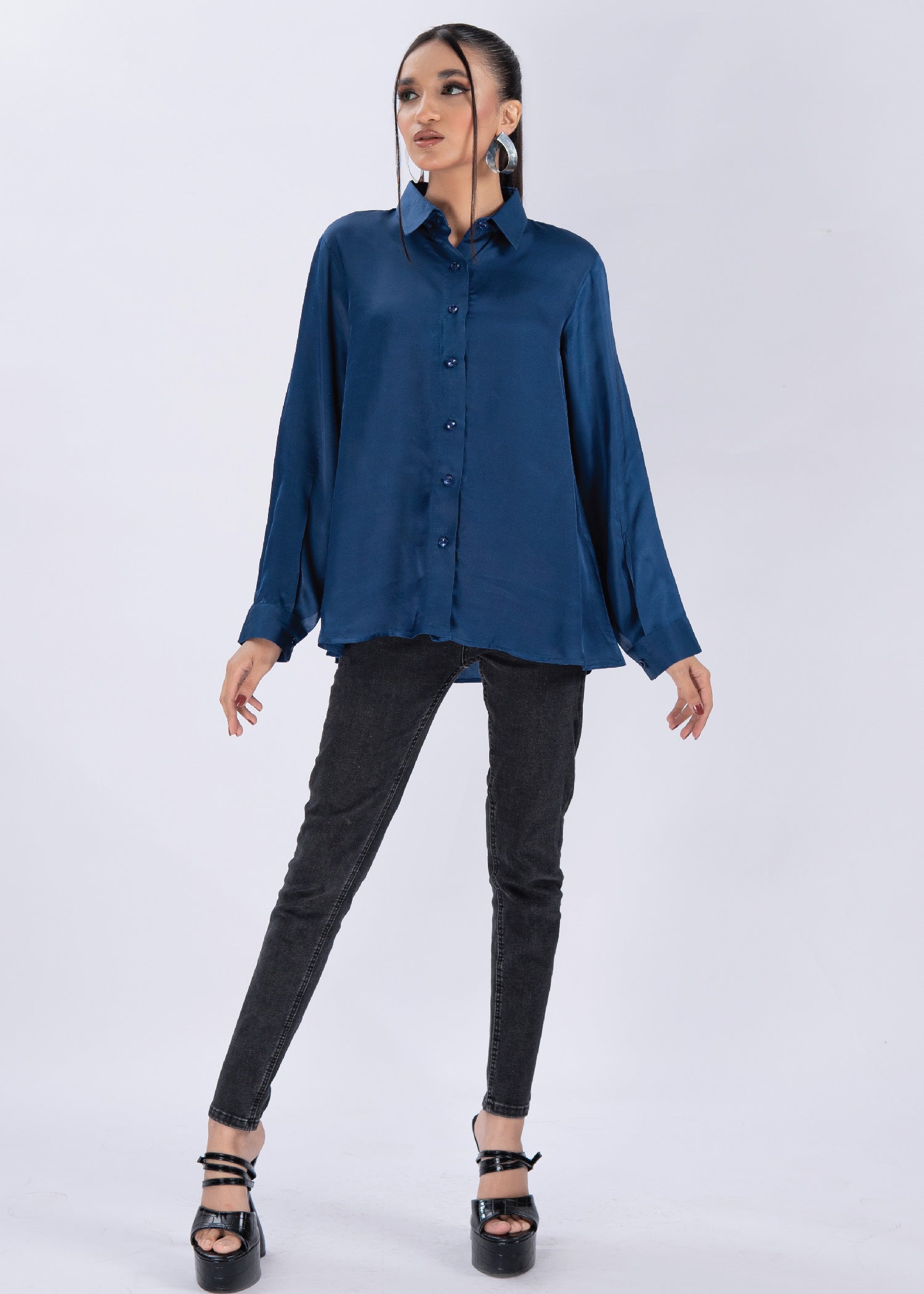 This classic blue button-down shirt enhances your work wardrobe, letting your personality shine while maintaining a professional look. Pair it with trousers, skirts, or even jeans for a chic, or everyday look.