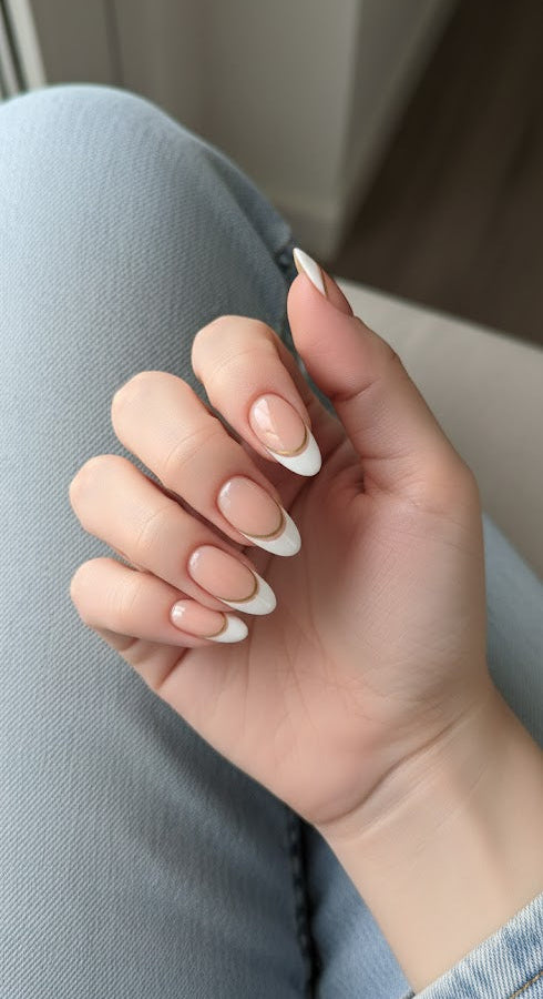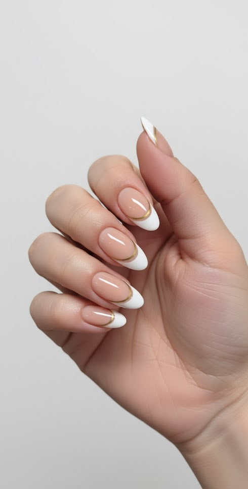 Minimal, modern, and effortlessly stylish — Vanilla Latte adds a statement touch to classic nude nails. The sleek brown-gold double outline creates a chic, luxurious finish, enhanced by a premium gel topcoat. Soft, flexible, and designed for a flawless natural fit that lasts.