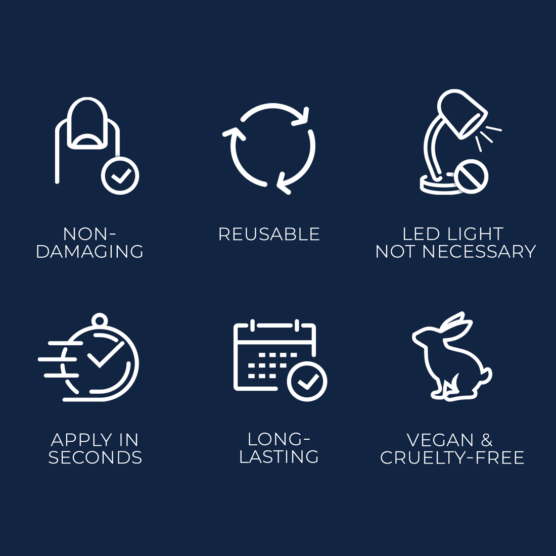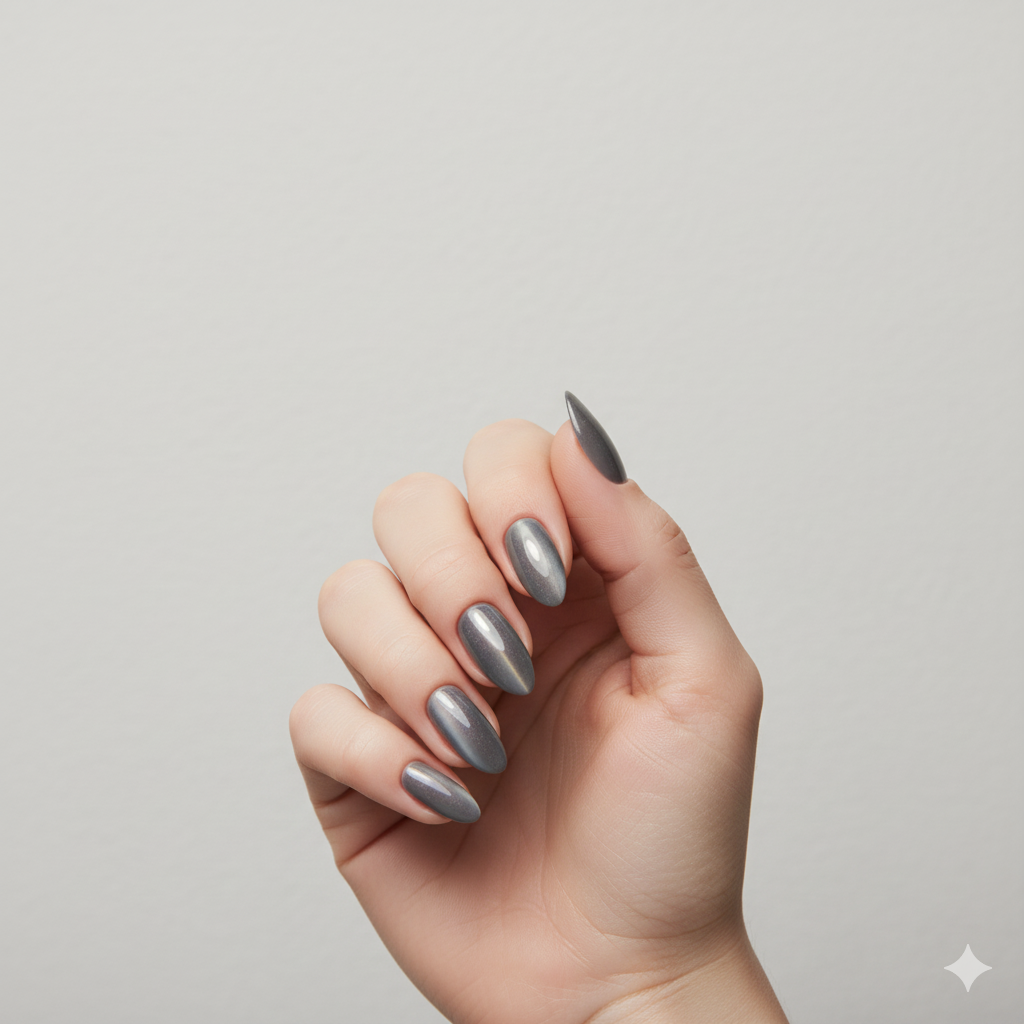 Mystical, sleek, and hypnotic — DUSK captures the magic of the cat-eye effect. This shimmering grey shifts and glows when viewed from different angles, giving your nails a dynamic, magnetic shine. With a smooth gel topcoat and a flexible, comfortable fit, these nails deliver a luxurious, salon-level finish in seconds.
